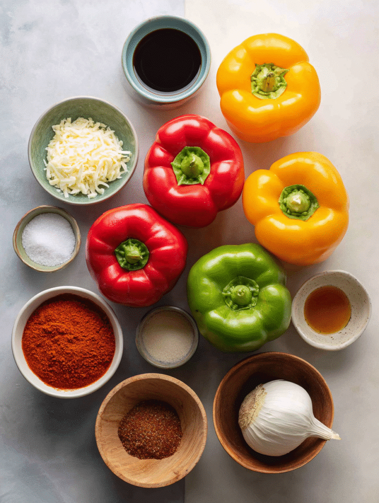 Before we dive into making these delicious crockpot stuffed peppers, let’s gather everything you’ll need. The beauty of crockpot stuffed peppers is how flexible they are you can tweak them based on your taste or what’s in your pantry.
