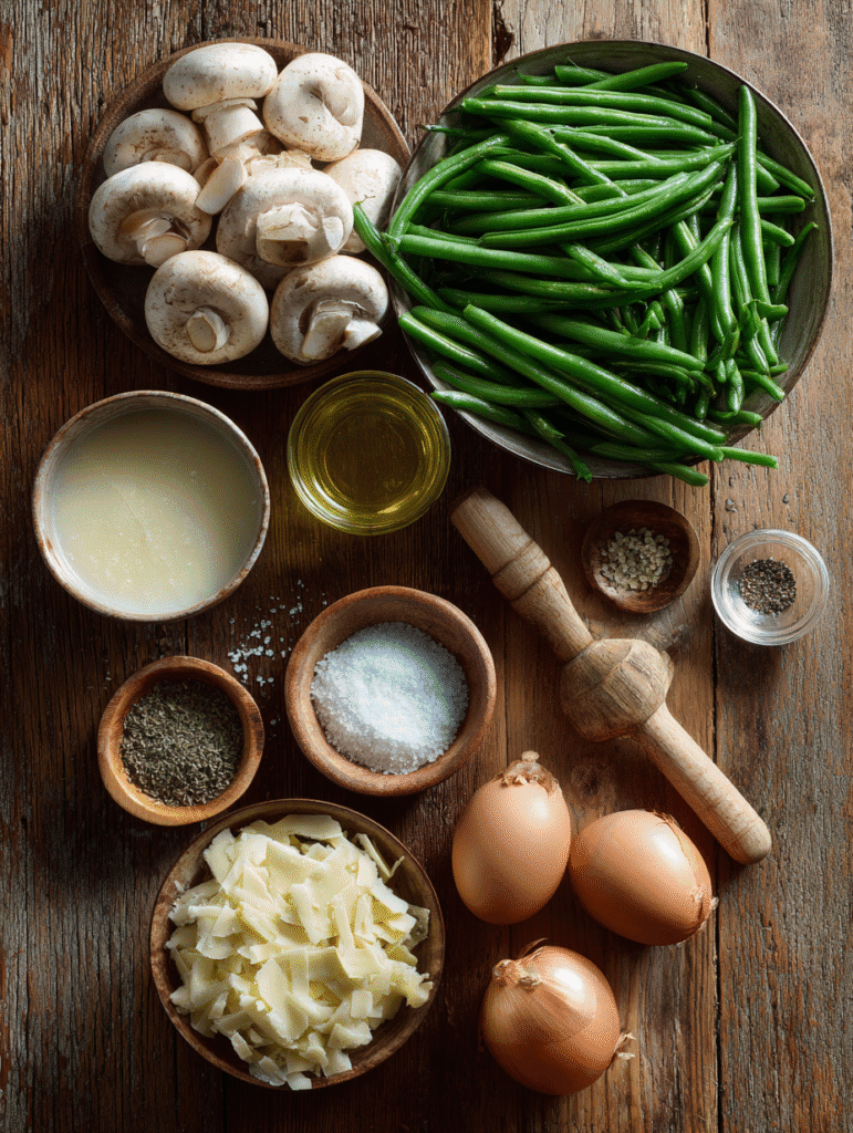 With these simple ingredients, green bean casserole becomes more than just a side it becomes a cozy, savory moment.