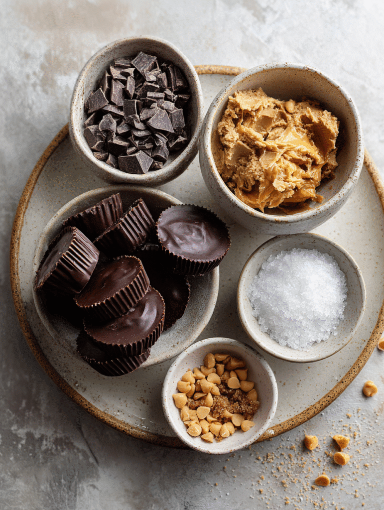 These ingredients come together to make about 8–10 mini High Protein Reese Cups perfect for meal prep or post‑workout snacks.