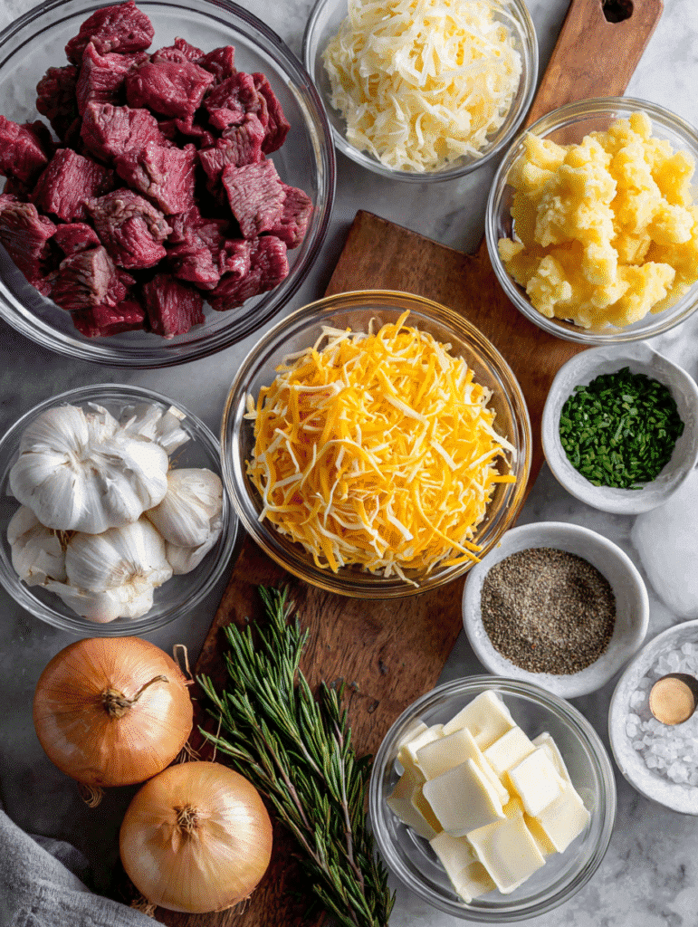Ingredients: What You Need for Slow Cooker Steak and Cheddar Potato Casserole